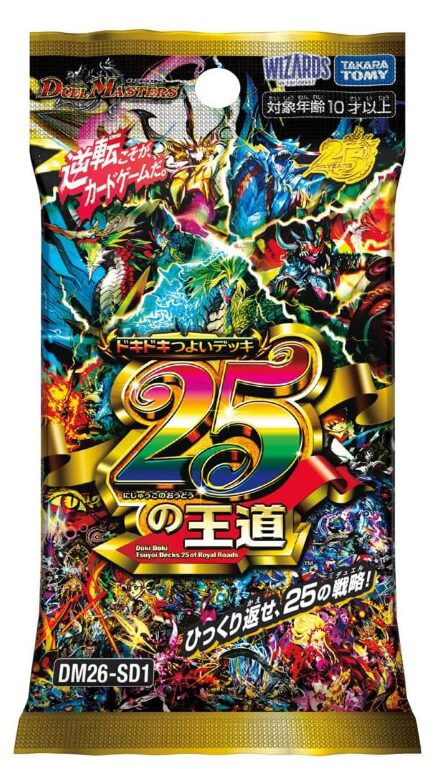 DM26-SD1 ドキドキつよいデッキ 25の王道は、デュエル・マスターズ25周年を記念した特別な構築済みデッキとして、2026年屈指の注目商品です。初心者でもすぐ遊べる完成度に加え、25種類の戦略がランダム封入されるワクワク感まで備えています。
