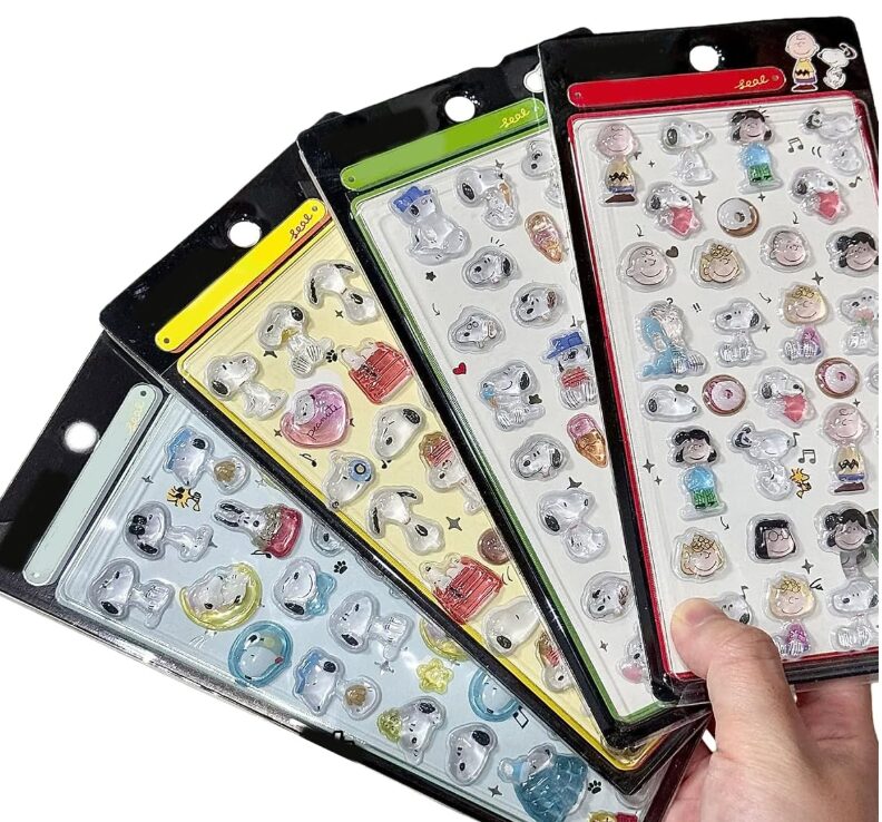 また、他キャラクターの3Dシールと比較しても、スヌーピーはデザインがシンプルなため、ぷくぷく加工との相性が良く、派手になりすぎません。価格帯・内容量(4枚セット)を考慮すると、コスパ面でもバランスの取れた立体シールといえるでしょう。