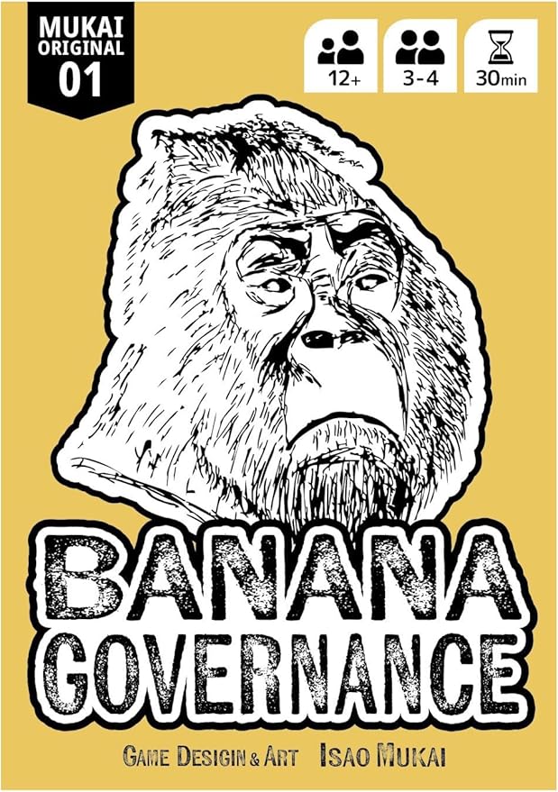 BANANA GOVERNANCE(バナナガバナンス)は、Laugh Games(ラフゲームス)から登場した、競り(オークション)を主軸に据えたボードゲームです。テーマは「バナナで統治する世界」。プレイヤーは支配者となり、バナナを資源として猿たちを競り落とし、最終的な得点を競います。