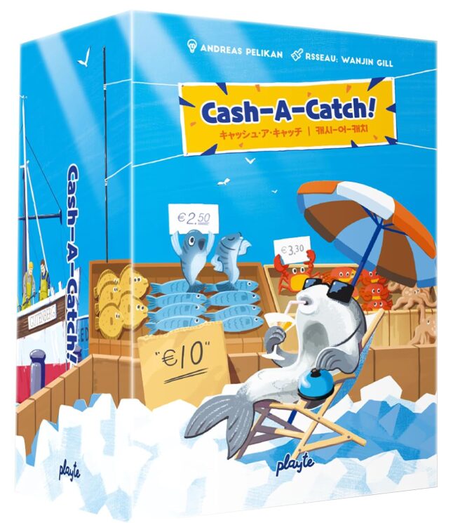 『キャッシュ・ア・キャッチ(Cash-A-Catch)』は、魚市場を舞台にしたリアルタイム競り(アクション・オークション)型ボードゲームです。日本語版は Playte から発売され、デザイナーは Andreas Pelikan。