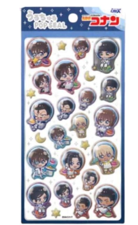 クラックス コナン うるちゅる POPSEAL ぷちコスモは、ぷっくり立体感と透明感のある質感、金箔押しのきらめきが魅力の完成度の高いキャラシールです。シートサイズや厚みのバランスがよく、手帳・ノート・スマホケースなど日常使いしやすい点も評価ポイント。