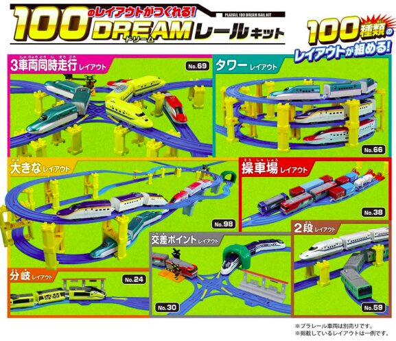 この「ドリームレールキット」には100種類のレイアウトが用意されているが、