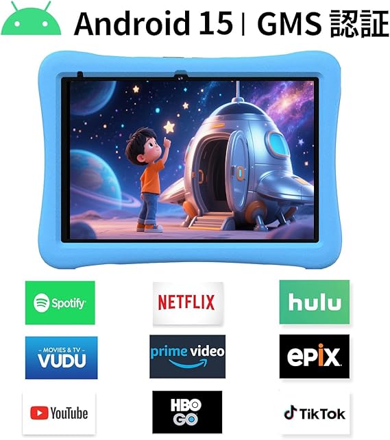 CUPEISI Kids Tablet(YQ11M)は、主に 3〜10歳前後のキッズ向けタブレットとして設計されています。Google公式の Kids Space と YouTube Kids に完全対応しており、教育系コンテンツ・知育アプリ・学習ゲーム・動画などを安全に楽しめるのが最大の強みです。