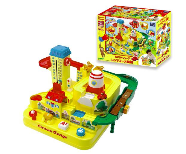 2025年10月24日に学研から発売される「おさるのジョージ レッツゴー大冒険!」(品番:83802)は、対象年齢3歳以上の知育玩具です。電池不要で、価格は税込8,778円前後(店舗により異なる見込み)。ジョージが住む街から別荘のカントリーまでを舞台に、レバーやボタンなどの操作で冒険を楽しむ構成となっています。