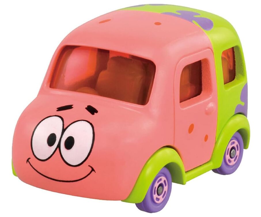 電池不要・サスペンション付きで、3歳以上向けの玩具として安心して遊べる仕様。通常のドリームトミカよりも“ネタ性”と“並べ映え”を意識したSPモデルで、発売元はタカラトミーです。スポンジ・ボブ版と並べて楽しむことを前提とした、コレクション色の強いキャラトミカと言えます。