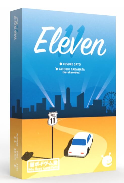 『Eleven(イレブン)』は、「11」という数字にすべてを委ねた、美しくも悩ましいゴーアウト系カードゲームです。初期手札11枚、最長11連番、勝利条件11点――徹底したルールの統一感は、読むだけでワクワクさせられます。手札を減らしたいのに、連番を出すほどカードを引かされるというジレンマ構造に加え、1色連番で始まる得点タイムでは、高得点ほど次が苦しくなる納得感あるランダム要素が展開。短時間ながら毎手に判断が求められ、軽量カードゲームとは思えない満足感を味わえます。さらに新録ヴァリアントにより、安定した優位を積み重ねる別の楽しみ方も可能。数字の構造美と駆け引きを堪能したい人にこそ遊んでほしい一作です。