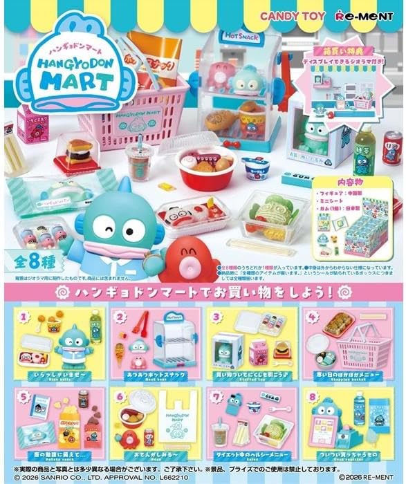 「サンリオ ハンギョドンマート 8個入りBOX」は、ハンギョドンを主役にしたコンビニテーマのミニチュア食玩シリーズです。全8種がBOX購入で確実に揃い、さらにディスプレイ用ジオラマが付属することで、並べた瞬間に“ハンギョドンマート”の世界観が完成します。