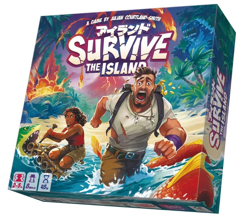 『アイランド(Survive The Island)』は、沈みゆく火山島から冒険者たちを脱出させ、宝物を持ち帰ることを目指す生存競争型ボードゲームです。原題は Survive The Island、日本ではかつて『アイランド ~アトランティスからの脱出~』として親しまれ、世界累計200万個以上販売された名作として知られています。