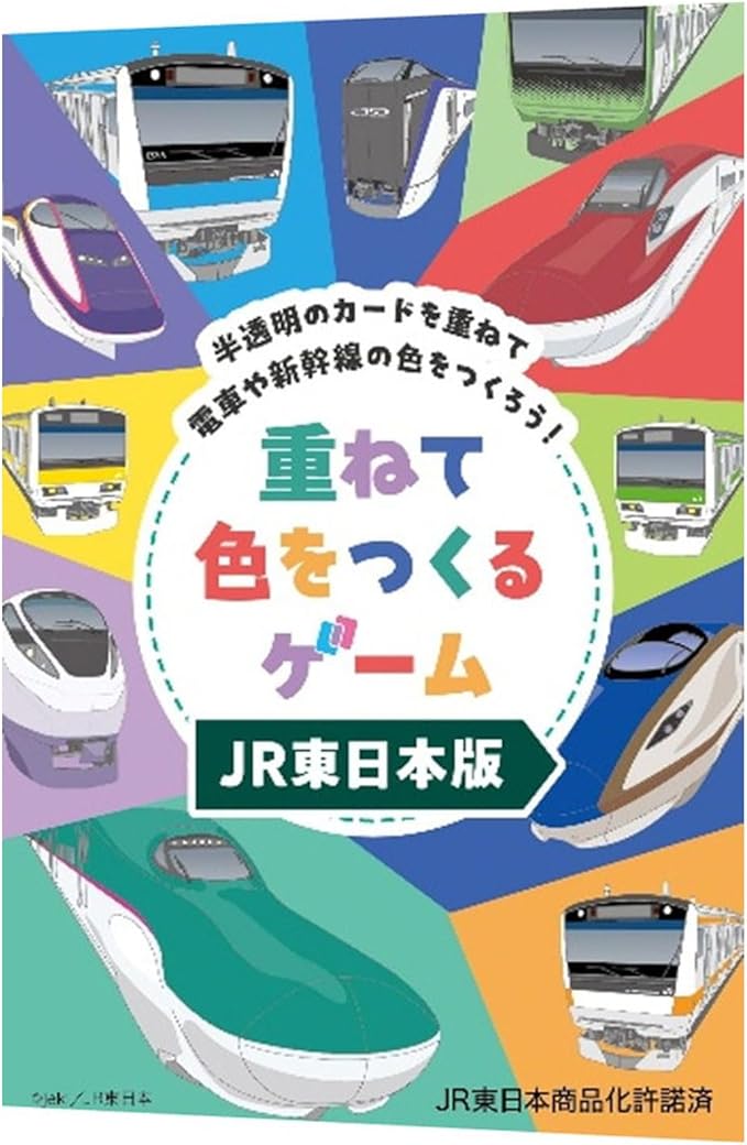 「重ねて色をつくるゲーム JR東日本版」は、透明カードを重ねて色を作るという独自の仕組みと、JR東日本の実在車両をモチーフにしたお題カードが融合した、知育にも遊びにも優れたボードゲームです。色の三原色(CMYK)を実際に重ねて試しながら、子どもは直感的に、大人は理論的に楽しめる奥深さがあり、年齢問わず長く遊べます。