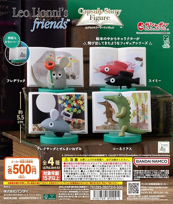レオ・レオニズ フレンズ カプセルストーリーフィギュア[全4種フルコンプセット]は、名作絵本の世界観を丁寧に立体化した、完成度の高いカプセルトイシリーズです。スイミー、フレデリック、コーネリアス、アレクサンダとぜんまいねずみという代表作をバランスよく収録し、フィギュアとミニブックによって物語性もしっかりと再現されています。