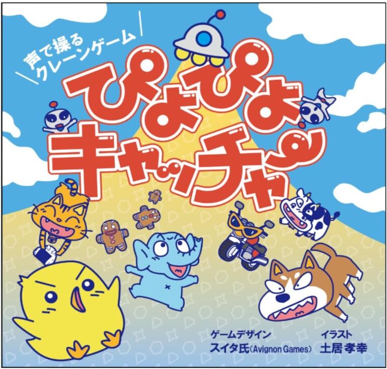 「ぴよぴよキャッチャー」は、言葉を使わず“鳴き声だけ”で協力する、新感覚のコミュニケーション系ボードゲームです。プレイヤーは2人1組のチームになり、声役とUFO役に分かれてカードの獲得を目指しますが、使える指示は「ぴよぴよ」「わんわん」といった鳴き声のみ。