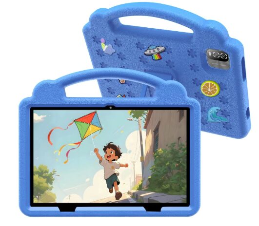 付属の保護ケースはEVAフォーム素材で作られており、柔らかく軽量でありながら衝撃に強いのが特徴です。子どもが落としたりぶつけたりしてもダメージを軽減し、端末をしっかり守ります。持ち手がついているため持ち運びがしやすく、外出先・車内・旅行中でも扱いやすい仕様。さらにスタンド機能も備えており、動画視聴やオンライン学習を手放しで楽しめる設計です。10インチ画面は視認性が高く、目が疲れにくい点も魅力。小さな手でも持ちやすい軽さと形状なので、2〜3歳の幼児でも扱いやすく、兄弟で共有しても安心して使える耐久性を備えています。