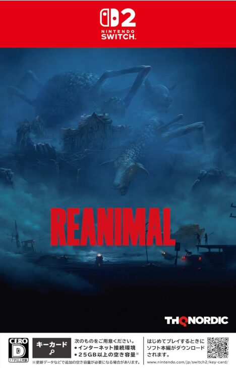 『REANIMAL』のパッケージ版はキーカード方式を採用しています。初回起動時にインターネット経由で本編データをダウンロードする必要があり、25GB以上の空き容量が必須です(更新データで追加容量が必要になる場合あり)。