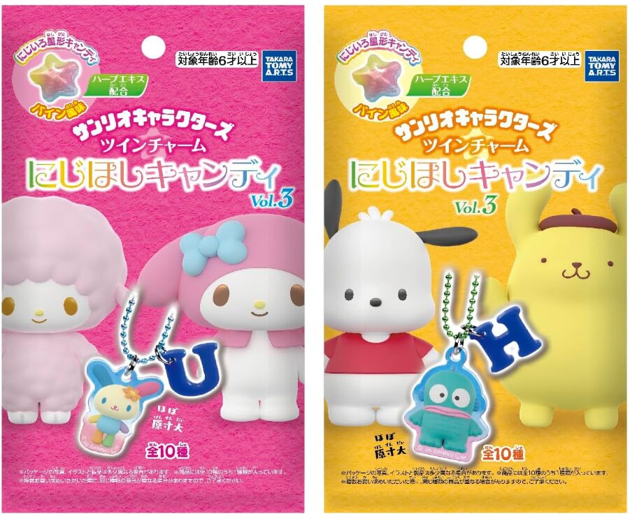 「サンリオキャラクターズ ツインチャーム にじほしキャンディ Vol.3」は、サンリオの人気キャラクターたちをモチーフにしたアクリルチャーム付きキャンディ食玩シリーズの第3弾です。キャラクターチャームとローマ字イニシャルチャームがセットになった“ツインチャーム仕様”が最大の特徴となります。