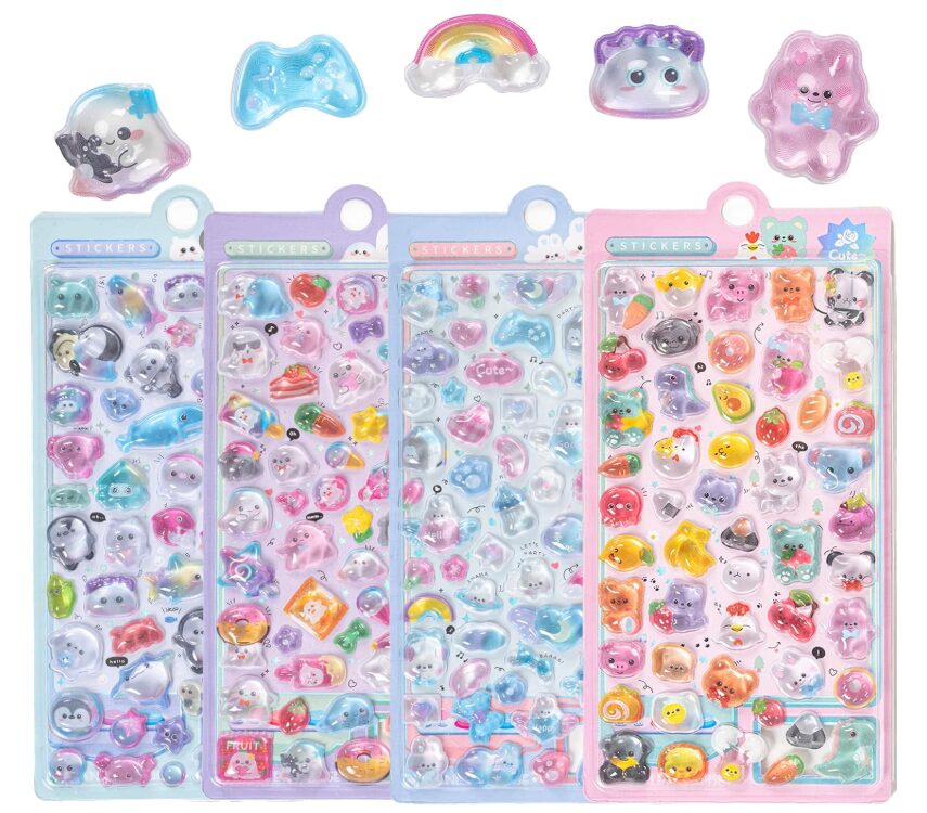 このぷくぷく3Dシールの大きな魅力は、デザインの豊富さと視覚的インパクトです。猫・星・ウサギ・イルカ・花など、誰でも使いやすい“かわいい系モチーフ”が揃っており、ジャンルを選ばずデコレーションできます。