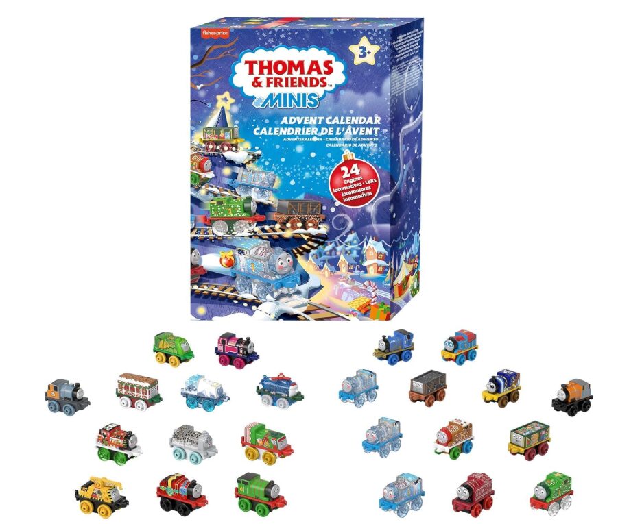 このカレンダーには“24台すべて違うミニチュア車両”が入っており、人気キャラクターが網羅されています。それぞれプッシュアロング仕様で遊びやすく、頑丈な作りも魅力。トーマスを中心に、パーシー、ジェームス、ニアなど主要キャラがラインナップされ、日ごとに仲間が増える構成は子どもを飽きさせません。さらに、貨車や特殊車両など、物語の中で活躍するメンバーも登場し、レールを使わずに床の上でも楽しく遊べます。小型サイズなので収納場所を取らず、集めて飾る楽しさも広がります。