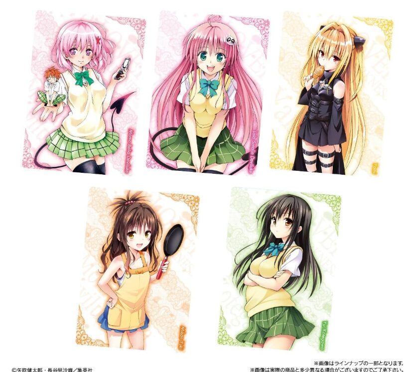 現時点では「美麗イラスト」とのみ告知されており、完全新規描き下ろしか、既存イラストの再録かは未発表です。ただし、過去のTo LOVEる関連食玩やカード商品を見る限り、以下のような構成になる可能性が高いと考えられます。