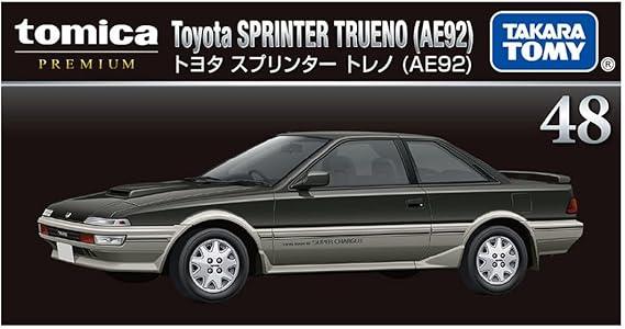 新たに登場する「トミカプレミアム 48 トヨタ スプリンター トレノ(AE92)」は、1980年代後半〜1990年代に人気を誇ったAE92型トレノを1/60スケールで精密に再現したモデルです。通常のトミカとは異なり、細部の表現が徹底しており、大人のコレクター向けアイテムとして高い完成度を誇ります。