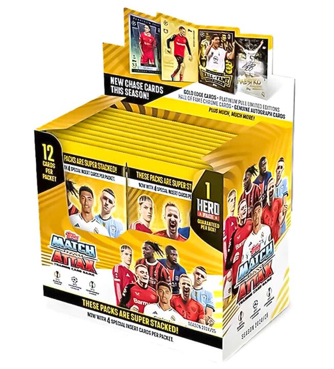 欧州サッカーファン必見のトレーディングカード「Topps Match Attax 24/25 フルボックス」が登場。Toppsが手掛ける本シリーズは、UEFA Champions Leagueをはじめとした欧州3大大会のスター選手を網羅し、コレクション性とゲーム性を兼ね備えた人気作です。本記事では、当たりカード一覧や封入率、開封レビュー、価格相場まで徹底解説。さらに、ヒーローパック保証の魅力やサインカードの狙い方など、購入前に知っておきたい情報を網羅しています。初心者から上級者まで役立つ“完全ガイド”として、今買うべき理由をわかりやすく紹介します。