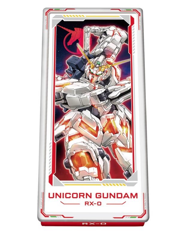 蓋部分にはエンボス加工が施され、ユニコーンガンダムの立体感が強調。単なる印刷ではなく凹凸による質感演出が行われており、コレクションアイテムとしての完成度が高いのが特徴です。