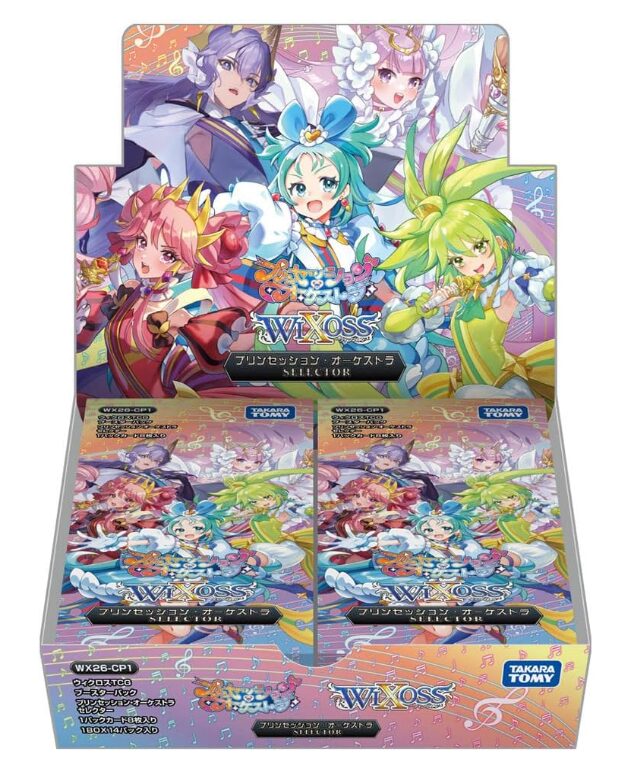 「WX26-CP1 ウィクロス TCG ブースターパック プリンセッション・オーケストラ SELECTOR BOX」は、2026年4月26日発売予定のタカラトミー公式ウィクロスTCG商品です。アニメ『プリンセッション・オーケストラ』とのコラボレーションに特化したブースターパックで、本BOXのみでデッキを構築できる設計が最大の特徴となっています。